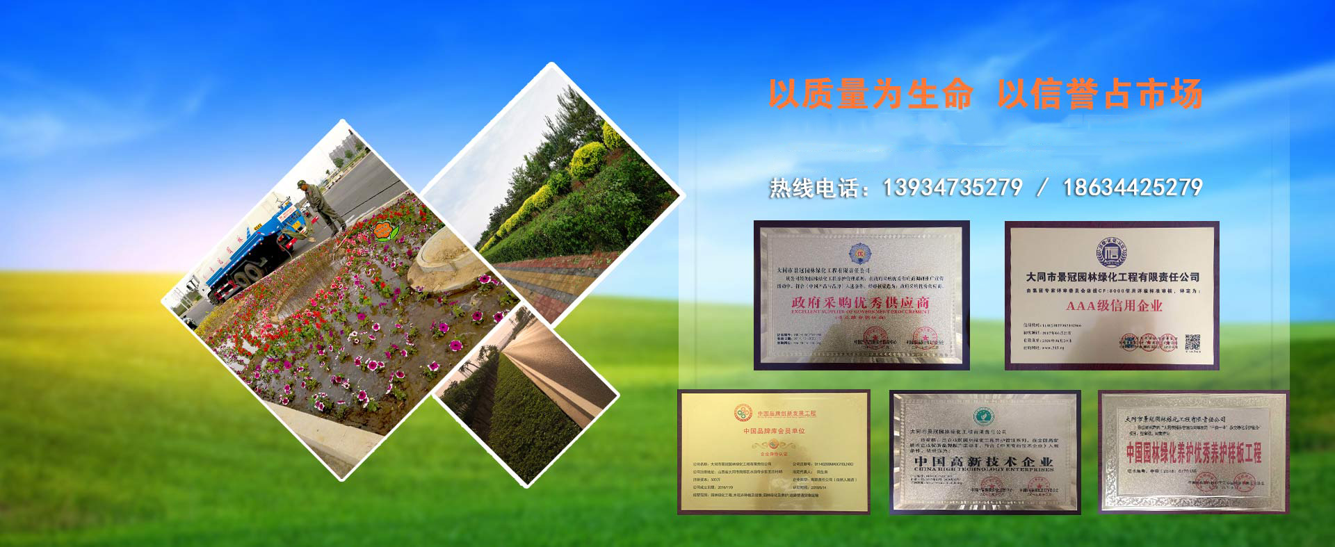 大同市景冠園林綠化工程有限責(zé)任公司是一家根植于設(shè)計(jì)、施工、植保養(yǎng)護(hù)、苗木花卉生產(chǎn)于一體的園林景觀企業(yè)。公司“以質(zhì)量為生命”、“以信譽(yù)求發(fā)展”這是公司一貫的經(jīng)營(yíng)宗旨。并以創(chuàng)新,誠(chéng)信,綠色,共享的發(fā)展理念,創(chuàng)造良好的企業(yè)環(huán)境。堅(jiān)持愛綠,護(hù)綠,保綠的方針為城市增添一份綠色,用綠色擔(dān)當(dāng)生態(tài)建設(shè)使命是我們共同追求的價(jià)值和企業(yè)目標(biāo)。以全新的管理模式,完善的技術(shù),周到的服務(wù),卓越的品質(zhì)為生存根本。幾年來我們致力于園林景觀植物領(lǐng)域的研究,在城市綜合體景觀,校園園林景觀,道路景觀,生態(tài)農(nóng)業(yè)景觀,美麗鄉(xiāng)村景觀,濕地景觀等多個(gè)領(lǐng)域參與規(guī)劃設(shè)計(jì)施工。不斷加大科技投入力度,加強(qiáng)人才的儲(chǔ)備,網(wǎng)絡(luò)技術(shù)的培訓(xùn),提升自主創(chuàng)新能力,不斷完善企業(yè)文化,用超前的技術(shù)制定出一套完整的園林植保技術(shù)管理方案。我們堅(jiān)持以擔(dān)當(dāng)為使命,用戶至上,服務(wù)至上,秉持初衷,不忘初心,實(shí)實(shí)在在,心無(wú)旁騖做好植保養(yǎng)護(hù)主業(yè),打造屬于自己的企業(yè)品牌,好好服務(wù)客戶,打動(dòng)客戶。